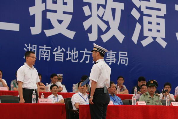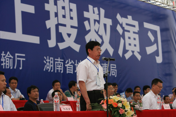 省交通運輸廳廳長吳亞中(圖左)擔任現(xiàn)場總指揮,省地方海事局局長陳健強(圖右)擔任現(xiàn)場執(zhí)行總指揮。 此次演習由湖南省人民政府主辦、湖南省交通運輸廳、湖南省地方海事局承辦,副省長韓永文擔任演習總指揮。 演習于當日上午9時展開。演習模擬一艘普貨船1號從湘江長沙鑫宇公司碼頭出發(fā)下行,航行至杜甫江閣水域下游花炮平臺正對水域時,與客渡船1號(載客30人、船員2人)發(fā)生碰撞,客渡船1號2名旅客受傷、10名乘客落水,船舶進水失控,面臨沉沒危險。普貨船1號避讓落水人員時又與航經(jīng)此水域的油船1號(裝載柴油500噸)發(fā)生碰撞,致油船1號油艙破損,在自救過程中發(fā)生火災(zāi)、爆炸,并發(fā)生柴油泄漏。 經(jīng)湖南省水上搜救中心組織、指揮、協(xié)調(diào)專業(yè)和社會力量全力救助,落水人員全部獲救,受傷人員緊急轉(zhuǎn)送到市區(qū)醫(yī)院,遇險乘客安全轉(zhuǎn)移;遇險船舶拖至安全水域靠泊。油船大火被撲滅,溢油得到控制,油污得到有效清除。演習歷時90分鐘,取得圓滿成功。 據(jù)悉,我省共有航道里程11968公里,居全國第三;渡口6074座,渡船4203艘,有船水庫145座、2700平方公里,均居全國第一。2009年全省完成水路貨運量1.18億噸、貨物周轉(zhuǎn)量255億噸公里,與“十五”末的2005年相比,分別增長156%、34%,我省水路貨運量約占全省社會運輸總量的10%,水路貨物周轉(zhuǎn)量占全社會總量的13%。水路運輸快速增長,確保水運安全,提高全省水上應(yīng)急搜救能力日益重要。此次演習不僅檢驗了《湖南省水上搜救應(yīng)急預(yù)案》的實用性和可操作性,以及多部門聯(lián)合應(yīng)急救援機制,而且積累了水上人命救助、船舶消防、水域防污染等方面的實戰(zhàn)經(jīng)驗,提高了我省水上應(yīng)急搜救的組織、協(xié)調(diào)和指揮能力。 韓永文在演習順利結(jié)束后指出,在水運經(jīng)濟快速發(fā)展的今天,我們必須高度重視水上交通安全和水運環(huán)境保護工作,要時刻警醒、時刻準備,要全面提高監(jiān)管救助和應(yīng)急水平,及時有效地應(yīng)對水上突發(fā)應(yīng)急事件,切實保障人民生命財產(chǎn)安全。全省各地各有關(guān)部門、單位要以此次演習為契機,認真總結(jié)經(jīng)驗,從“保障人民生命財產(chǎn)安全”的高度,把水上應(yīng)急管理工作擺到更加突出的位置,用更多的精力,采取更強的措施,切實做好應(yīng)對水上突發(fā)事件工作,為維護公共安全、構(gòu)建和諧社會提供有力保障。