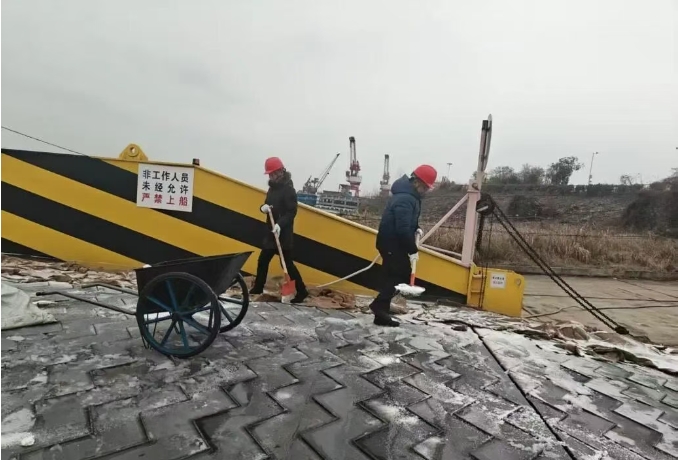 長沙金霞港口公司全體干部職工對作業(yè)區(qū)、主干道等重點區(qū)域的積雪積冰進行“地毯式”清理,保障港口道路暢通無阻和作業(yè)現場安全有序。同時,公司嚴格執(zhí)行24小時應急值班制度,通過內部渠道及時發(fā)布天氣預警,確保指令上傳下達暢通,為快速響應冰雪天氣筑牢制度保障。