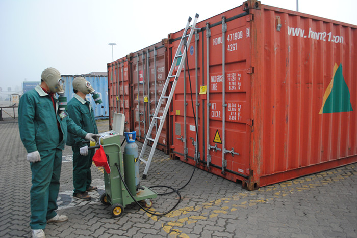 日前,中南地區(qū)第一臺最現(xiàn)代化的“移動式微電腦施藥器”在長沙新港投入使用。近日,湖南省進(jìn)出口檢驗(yàn)檢疫局技術(shù)人員,在長沙新港首次對國際集裝箱采用封閉式消毒、熏蒸。這是我省使用的第一臺消毒熏蒸設(shè)備,結(jié)束商檢開箱施藥消毒熏蒸的歷史。