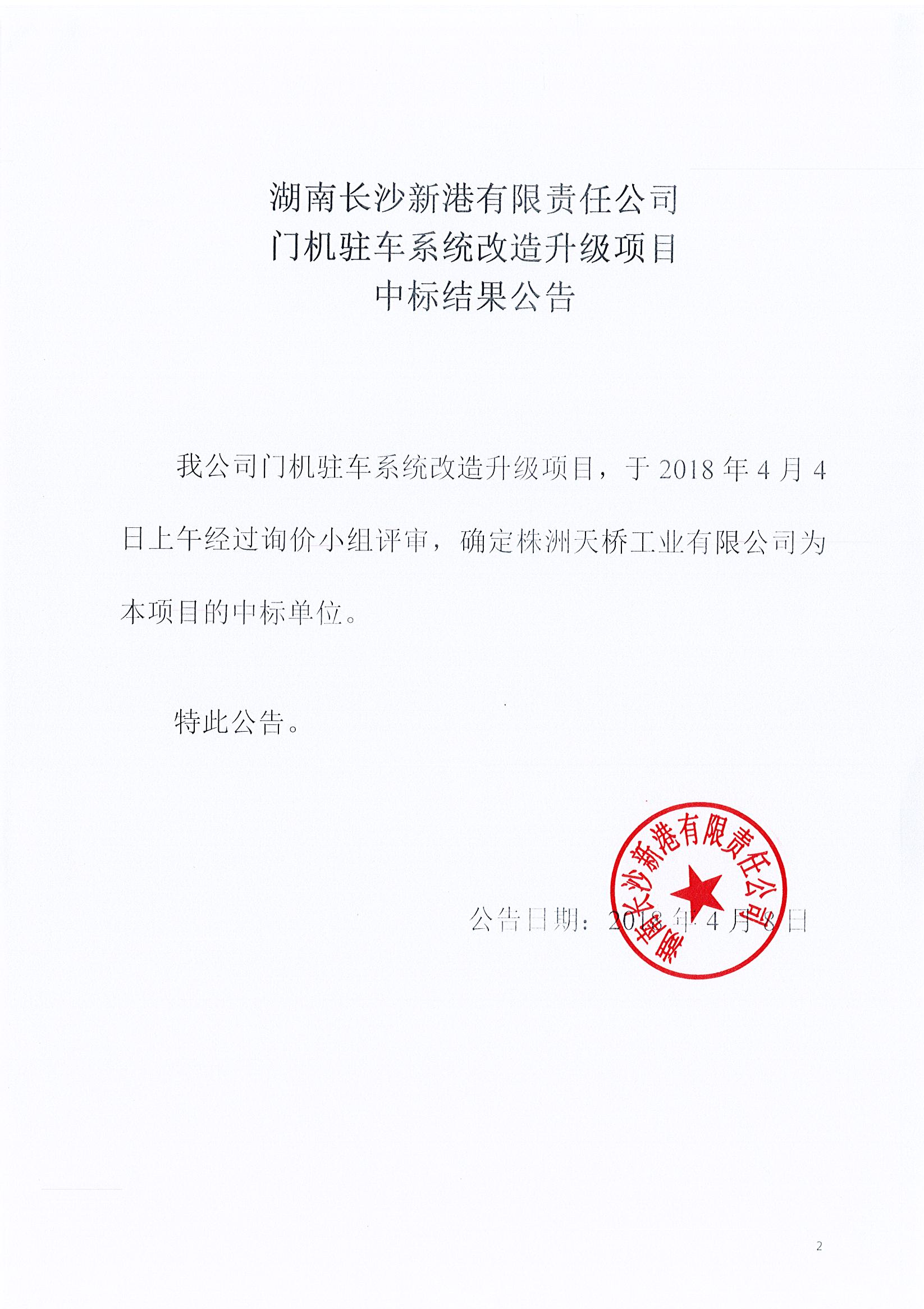 湖南長(zhǎng)沙新港有限責(zé)任公司 門機(jī)駐車系統(tǒng)改造升級(jí)項(xiàng)目中標(biāo)結(jié)果公告