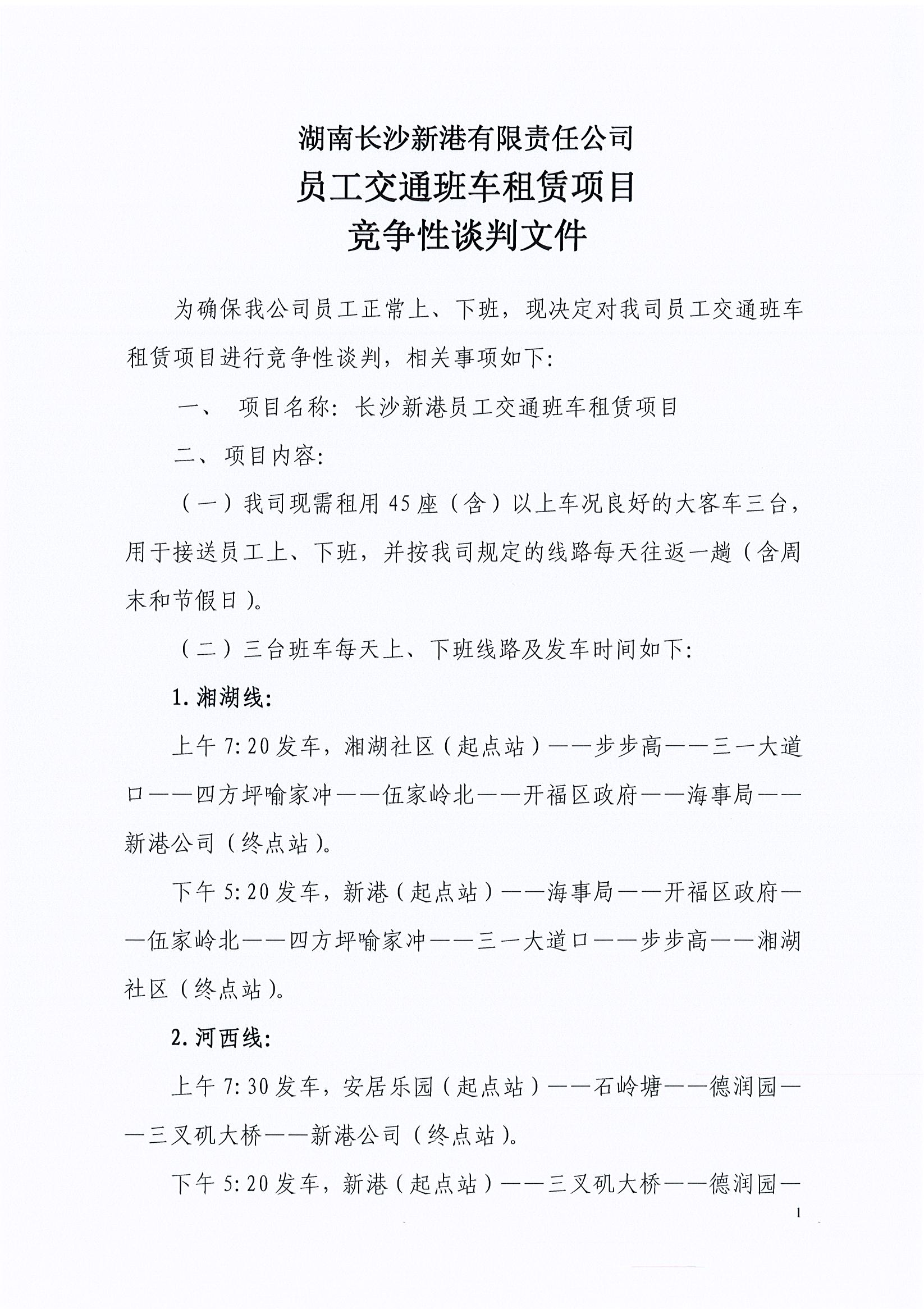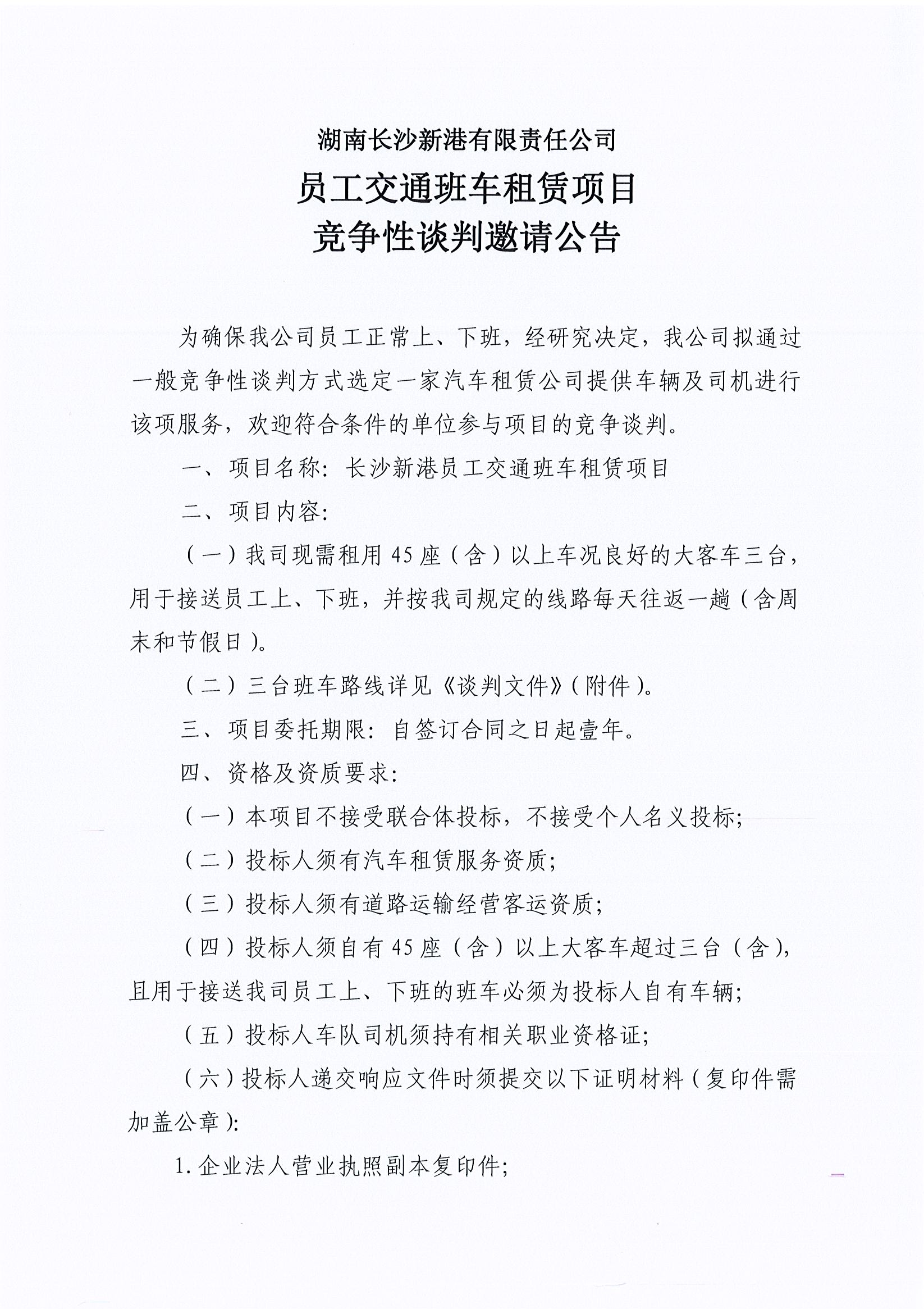 湖南長沙新港有限責(zé)任公司 員工交通班車租賃項目競爭性談判邀請公告