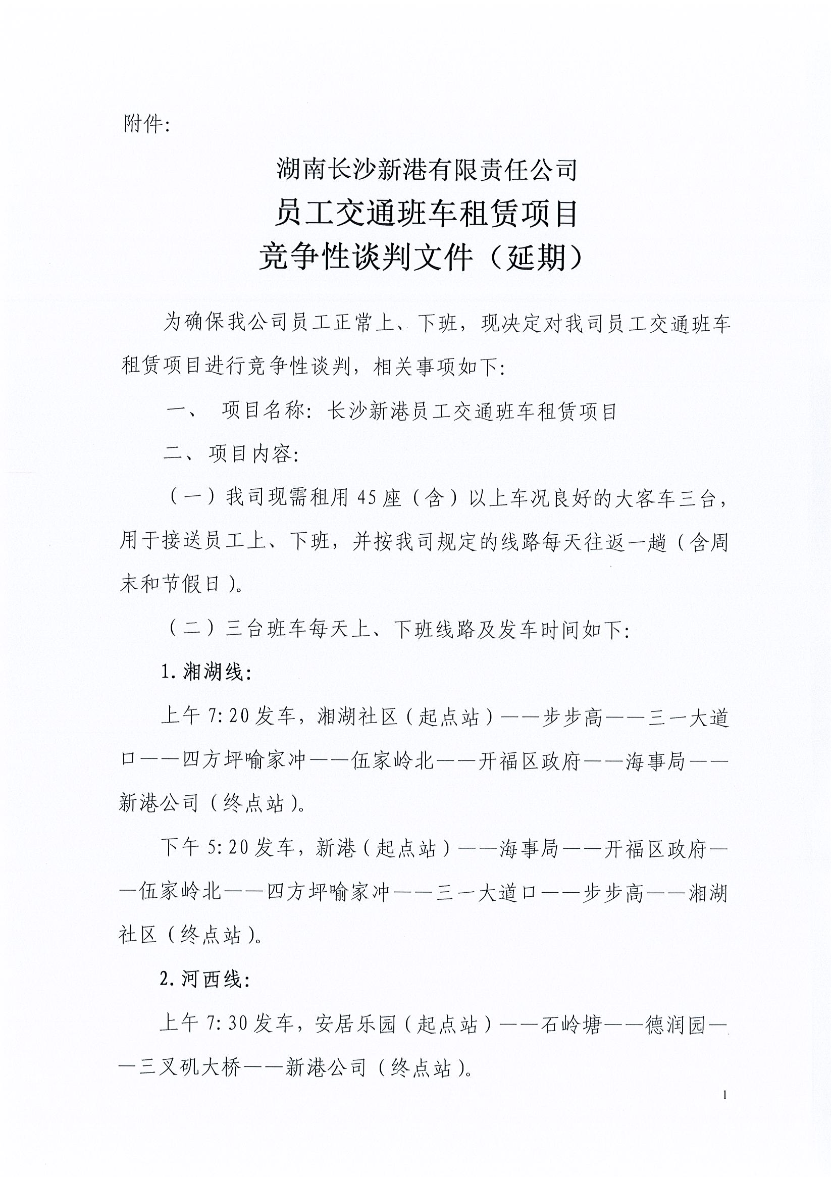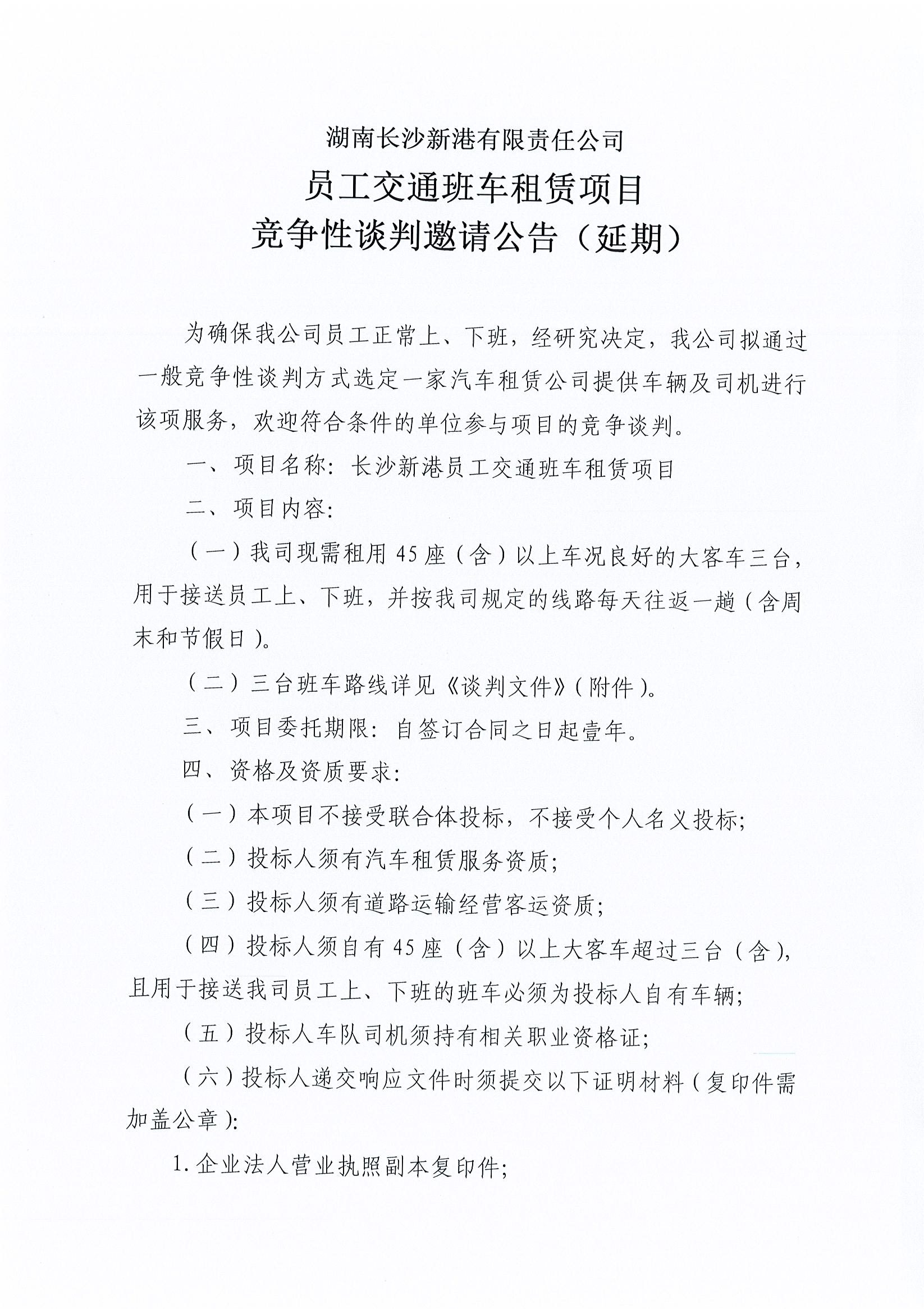 湖南長(zhǎng)沙新港有限責(zé)任公司 員工交通班車(chē)租賃項(xiàng)目競(jìng)爭(zhēng)性談判邀請(qǐng)公告(延期)