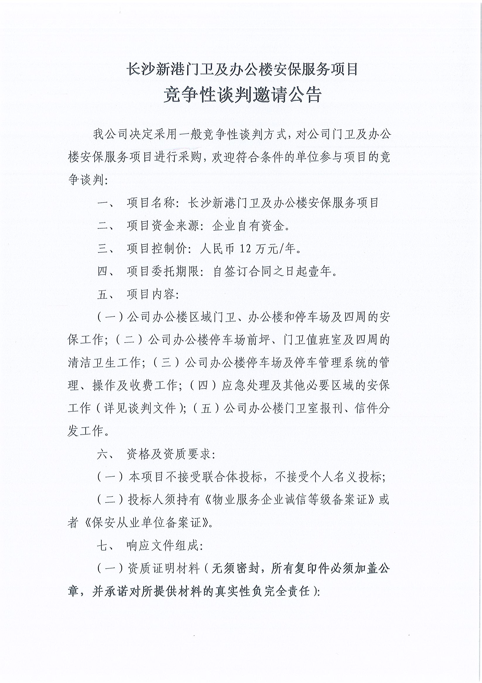 長(zhǎng)沙新港門(mén)衛(wèi)及辦公樓安保服務(wù)項(xiàng)目競(jìng)爭(zhēng)性談判邀請(qǐng)公告