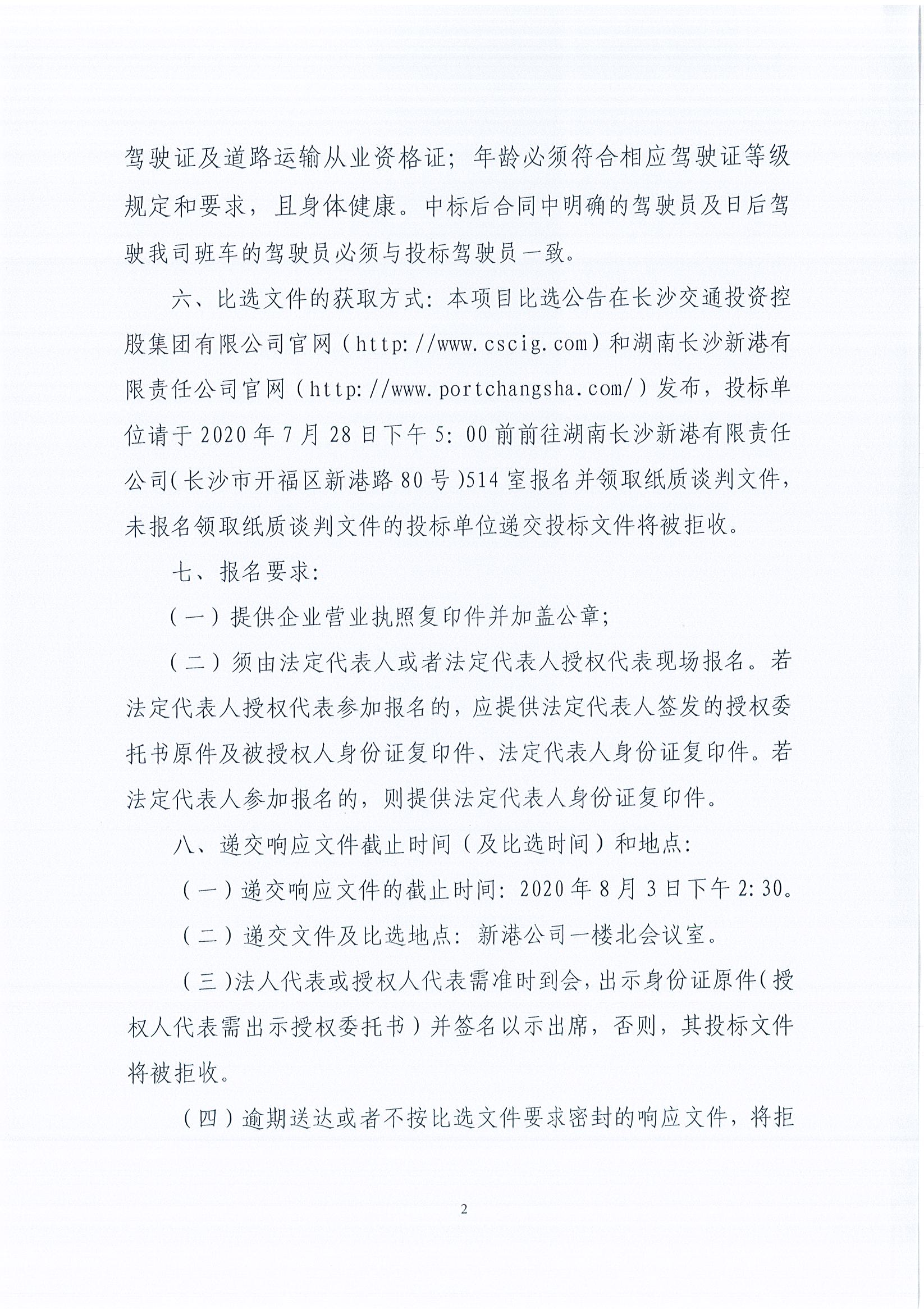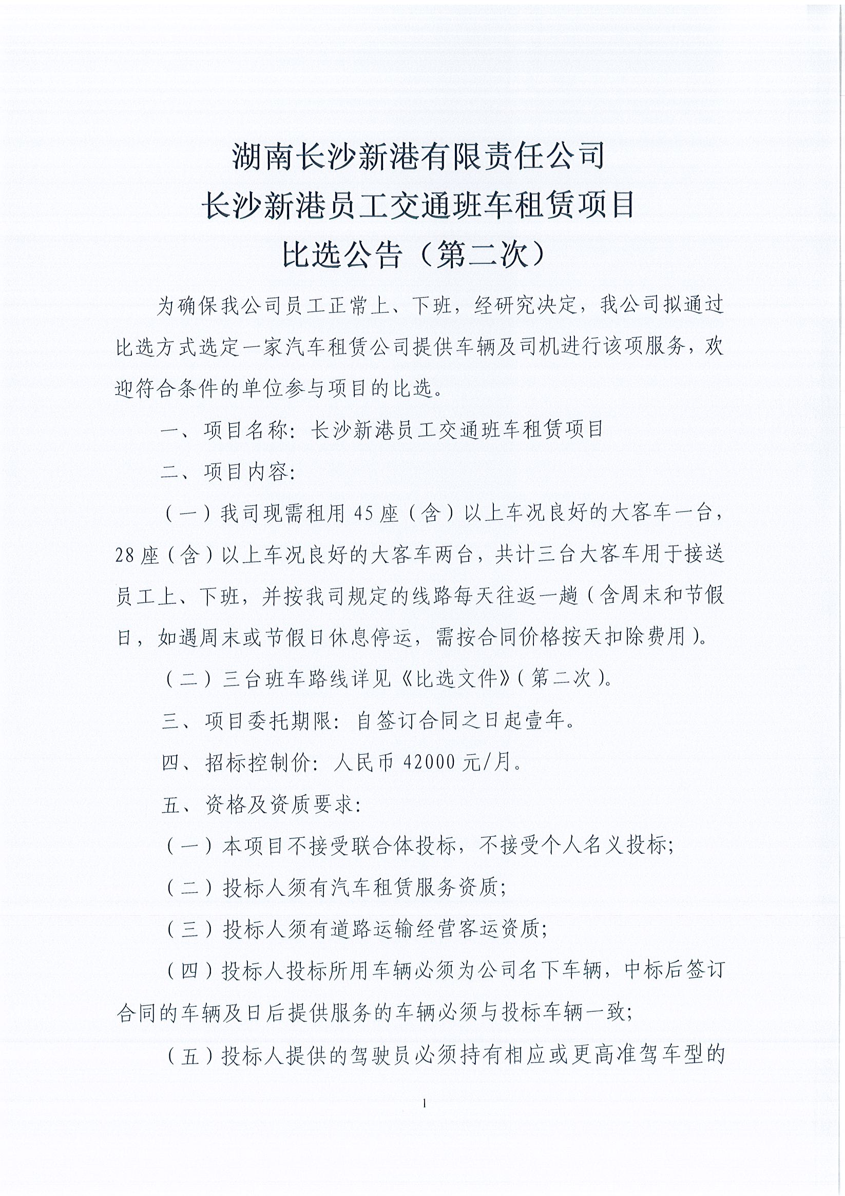 湖南長沙新港有限責任公司長沙新港員工交通班車租賃項目比選公告(第二次)
