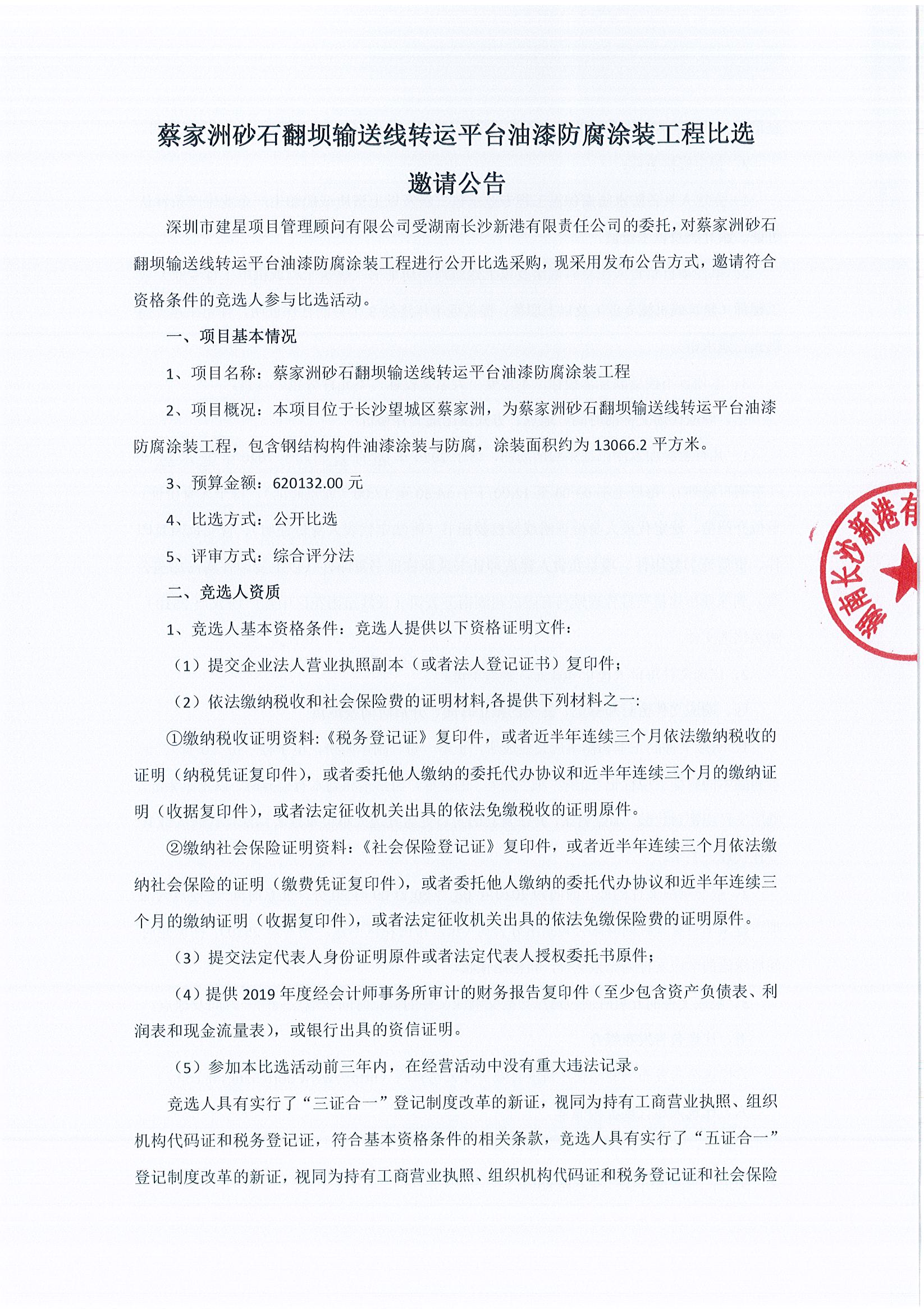 蔡家洲砂石翻壩輸送線轉(zhuǎn)運(yùn)平臺油漆防腐涂裝工程比選邀請公告