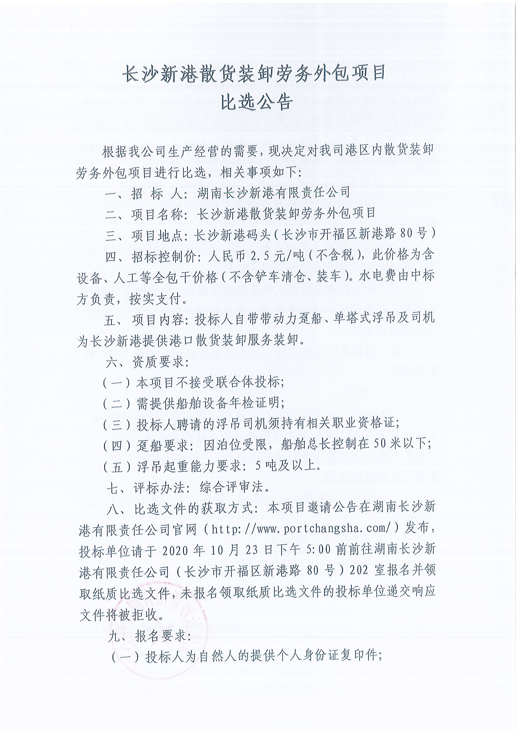 長(zhǎng)沙新港散貨裝卸勞務(wù)外包項(xiàng)目比選公告