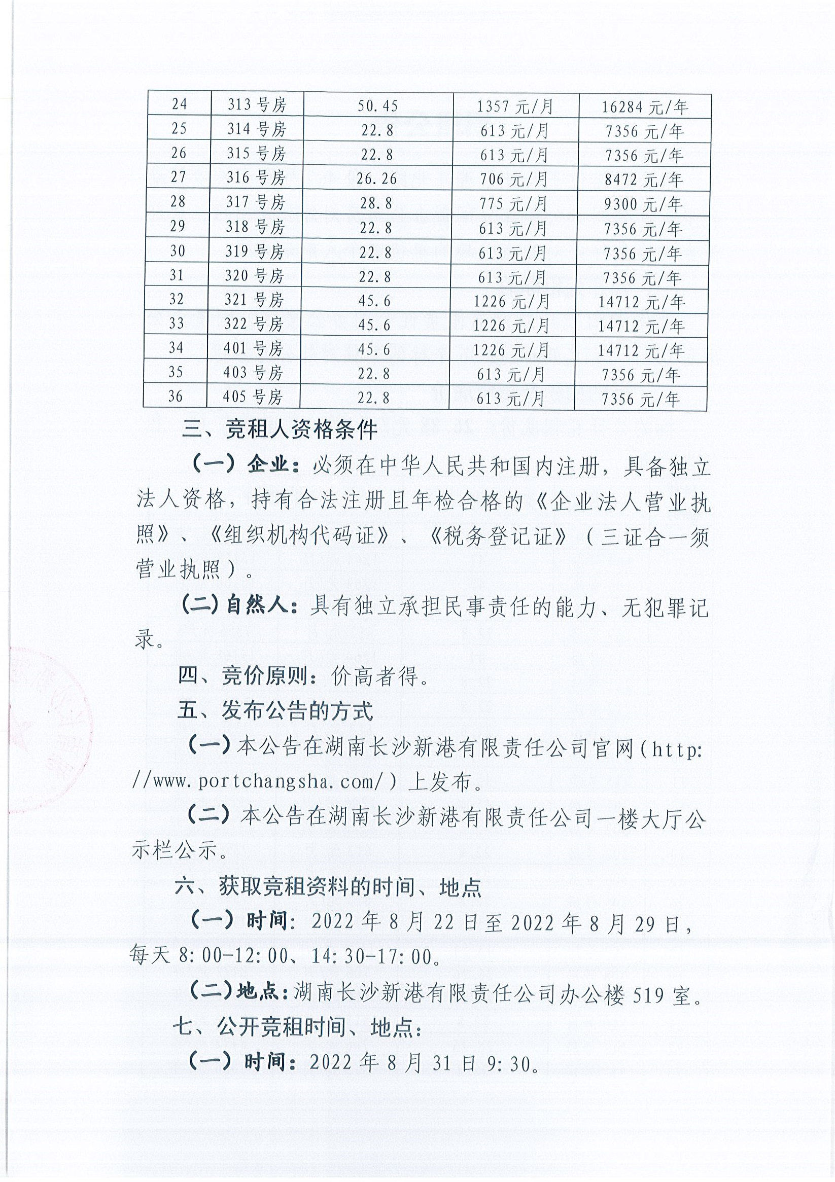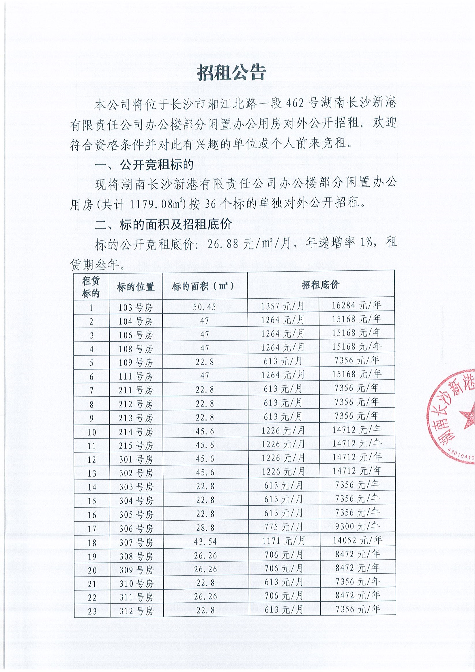 新港公司招租公告