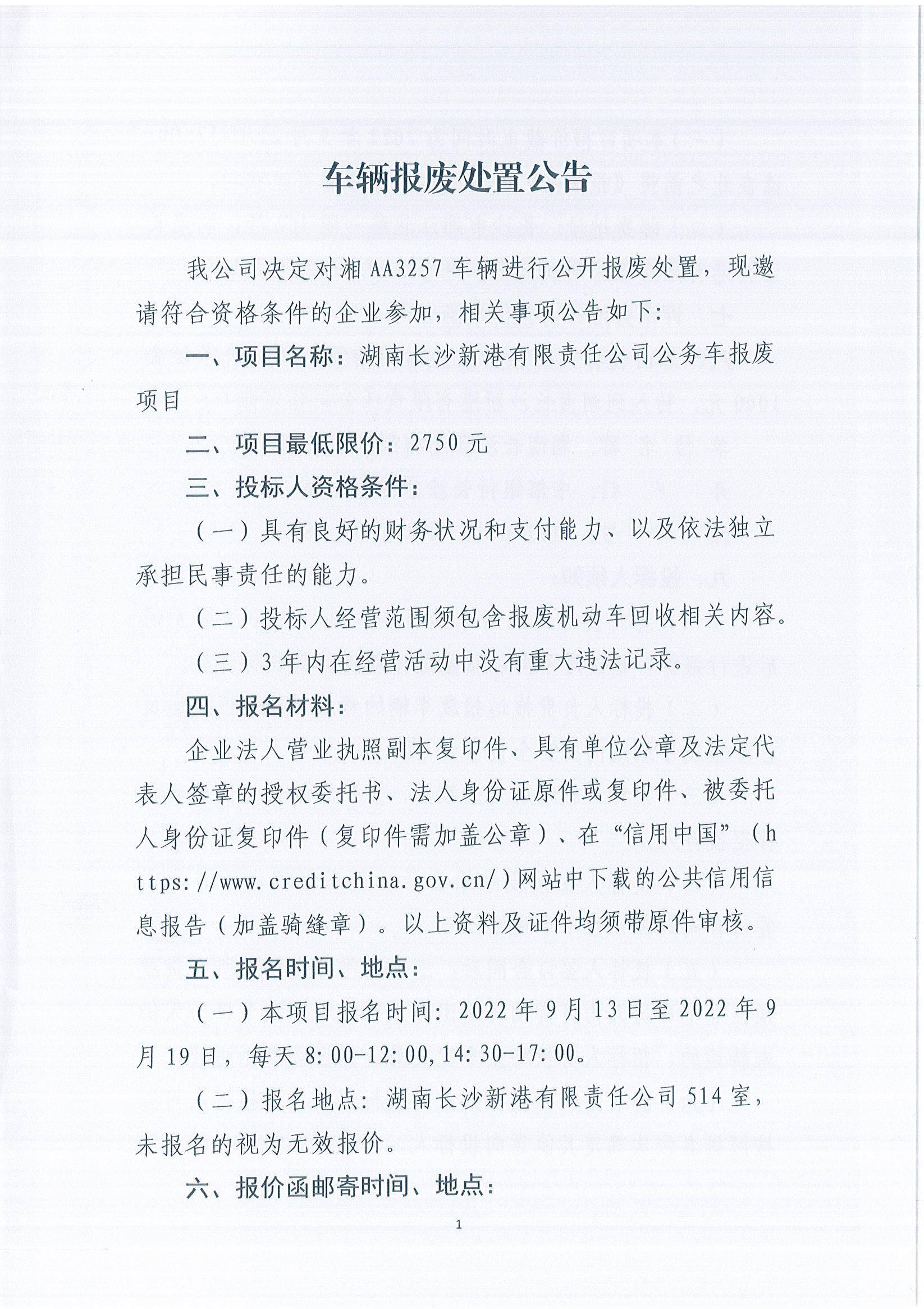 車輛報(bào)廢處置公告