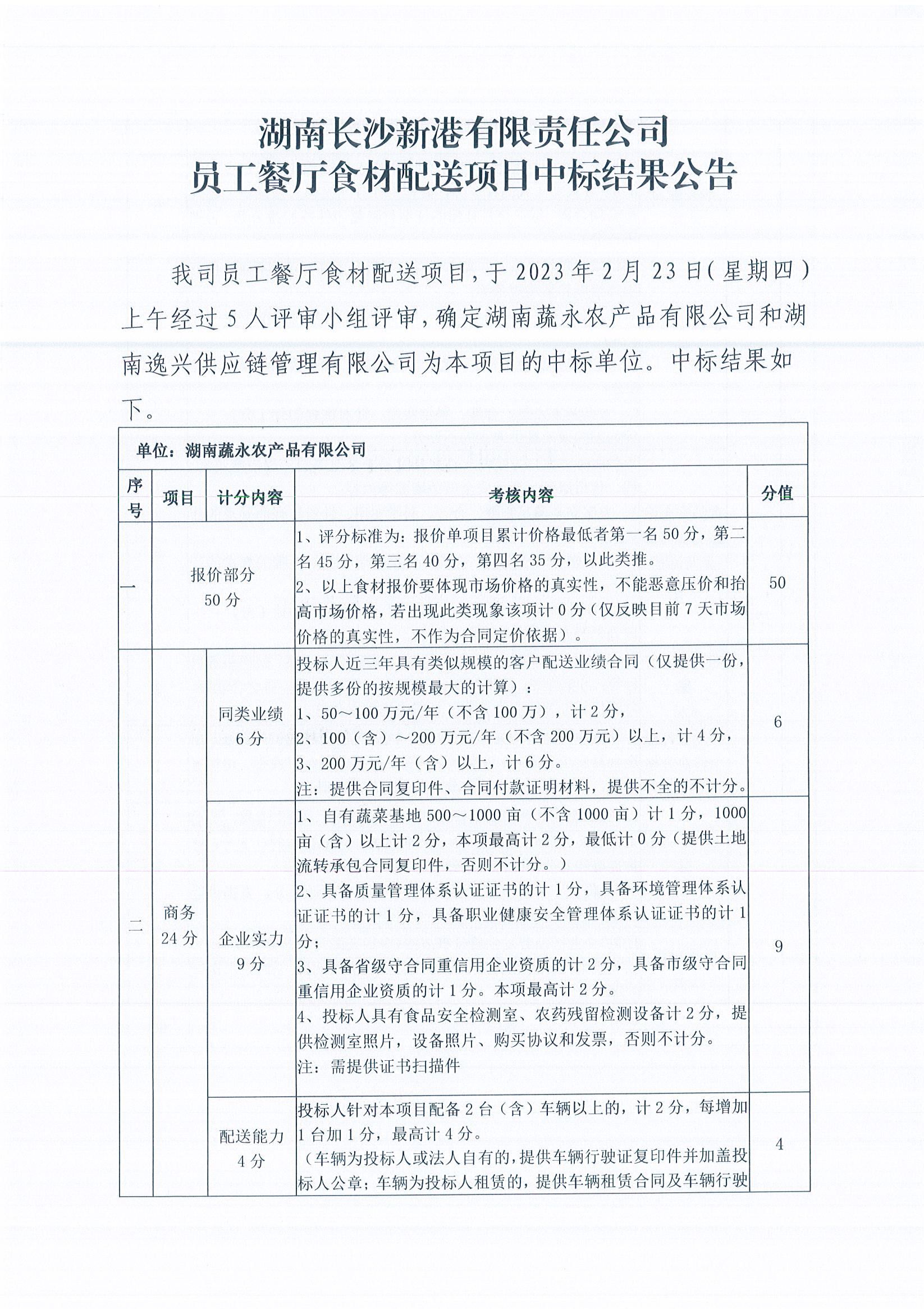 員工餐廳食材配送項(xiàng)目中標(biāo)結(jié)果公告