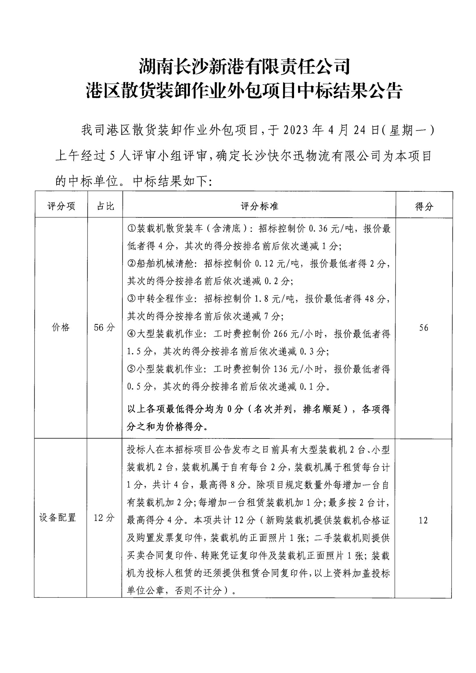 港區(qū)散貨裝卸作業(yè)外包項(xiàng)目中標(biāo)結(jié)果公告