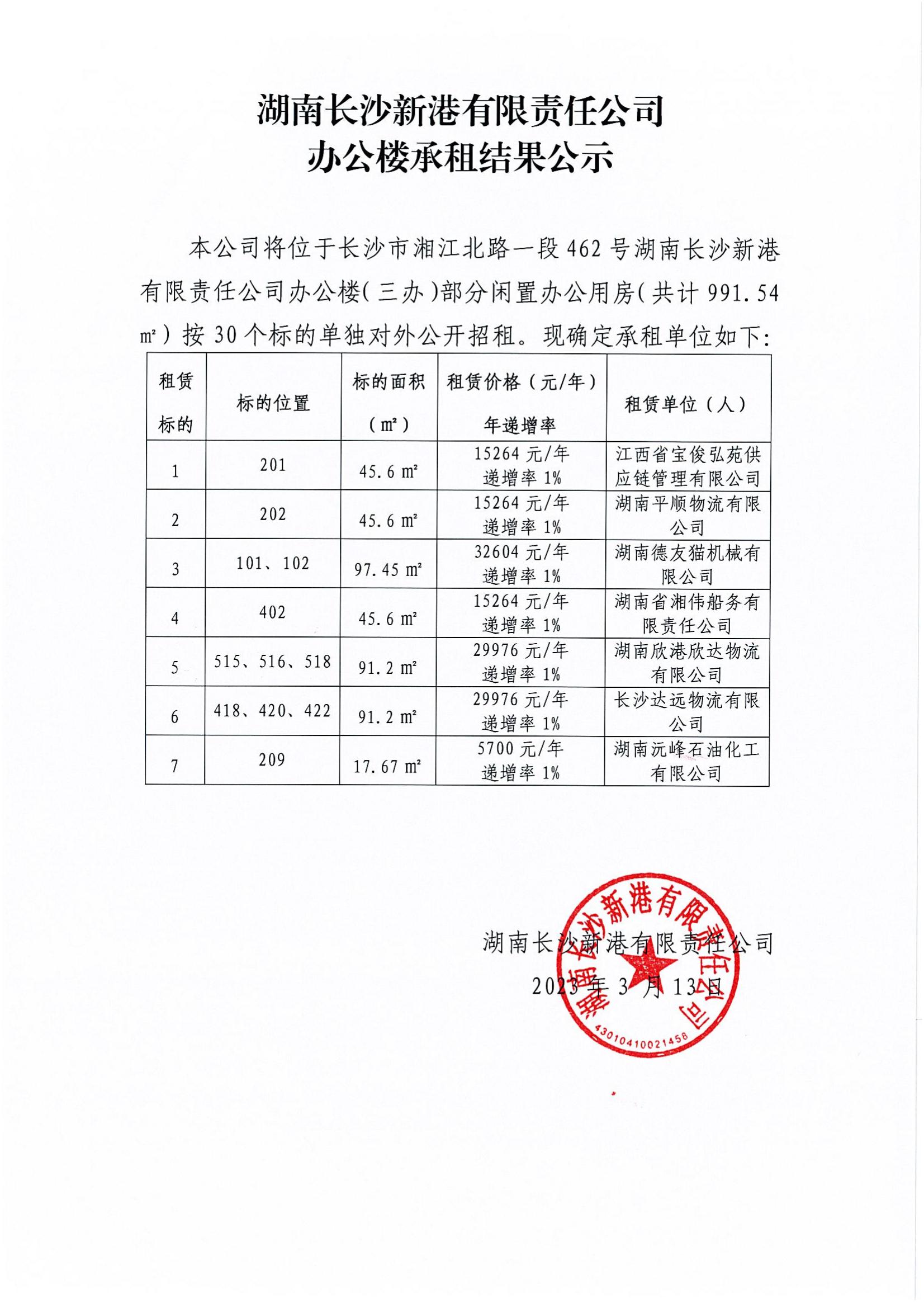 辦公樓承租結(jié)果公示