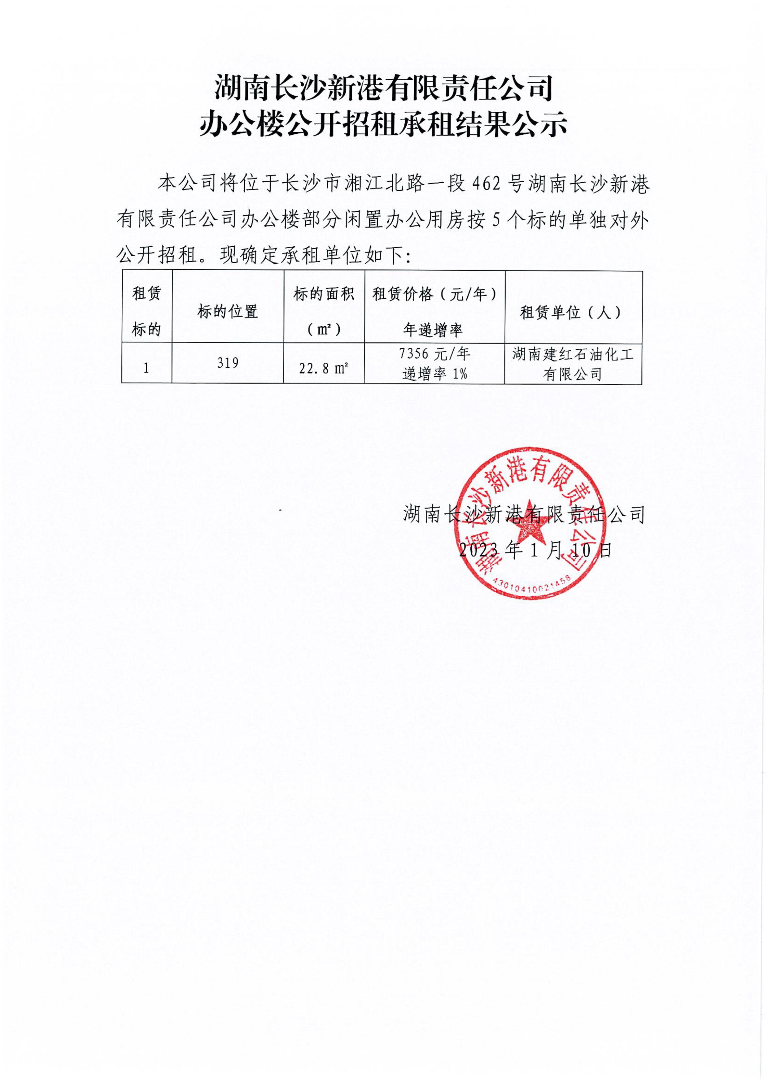 辦公樓公開招租承租結(jié)果公示