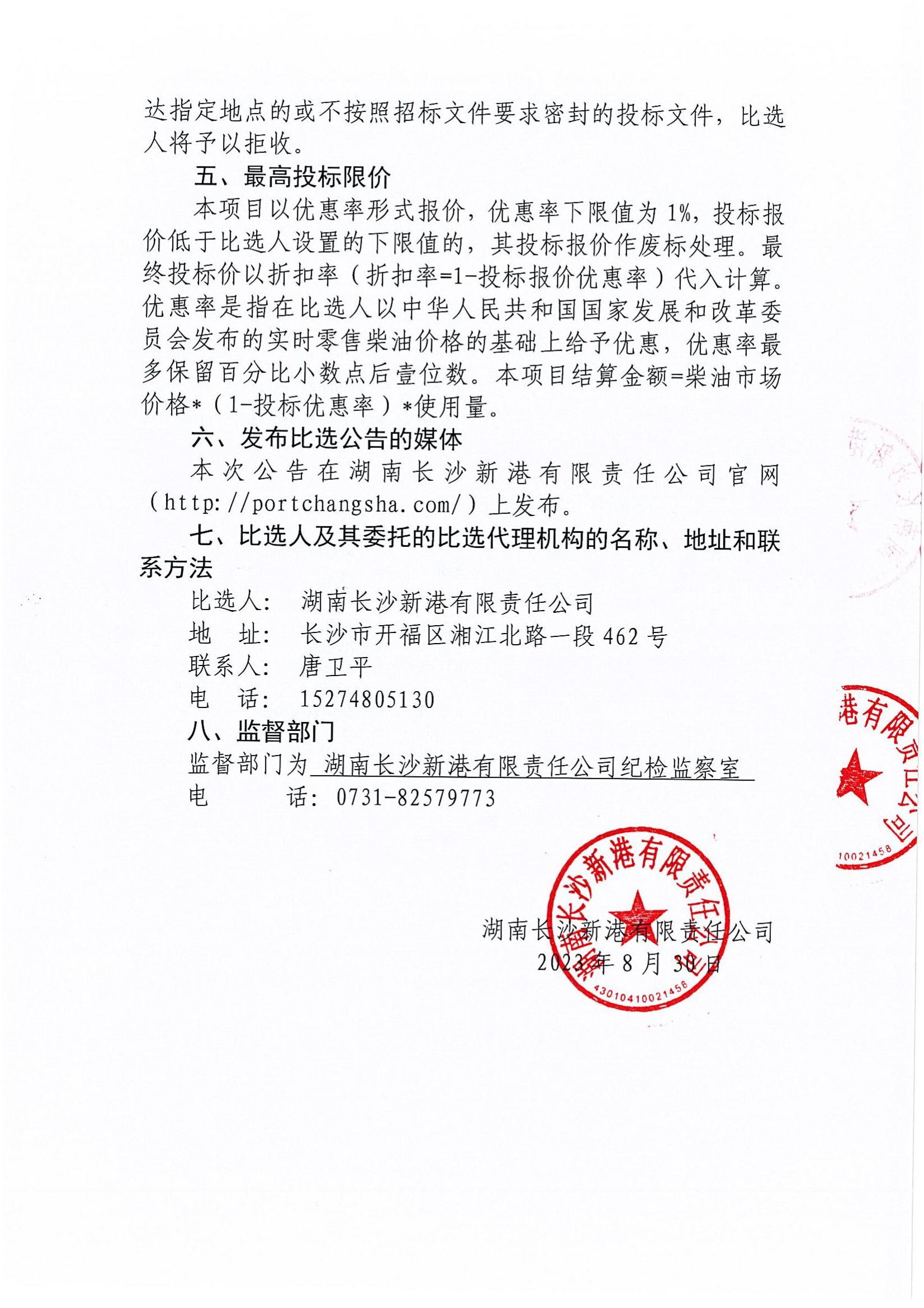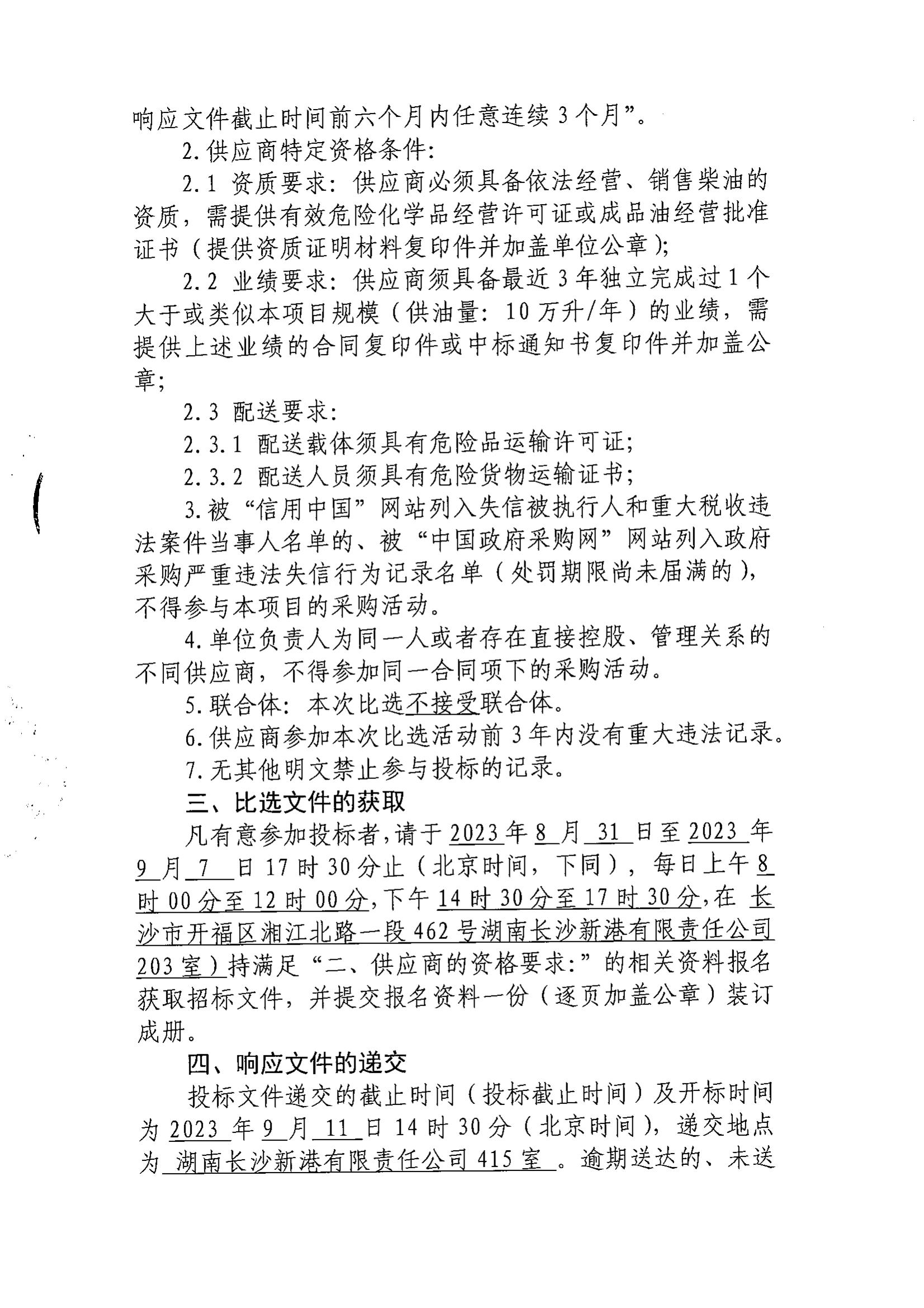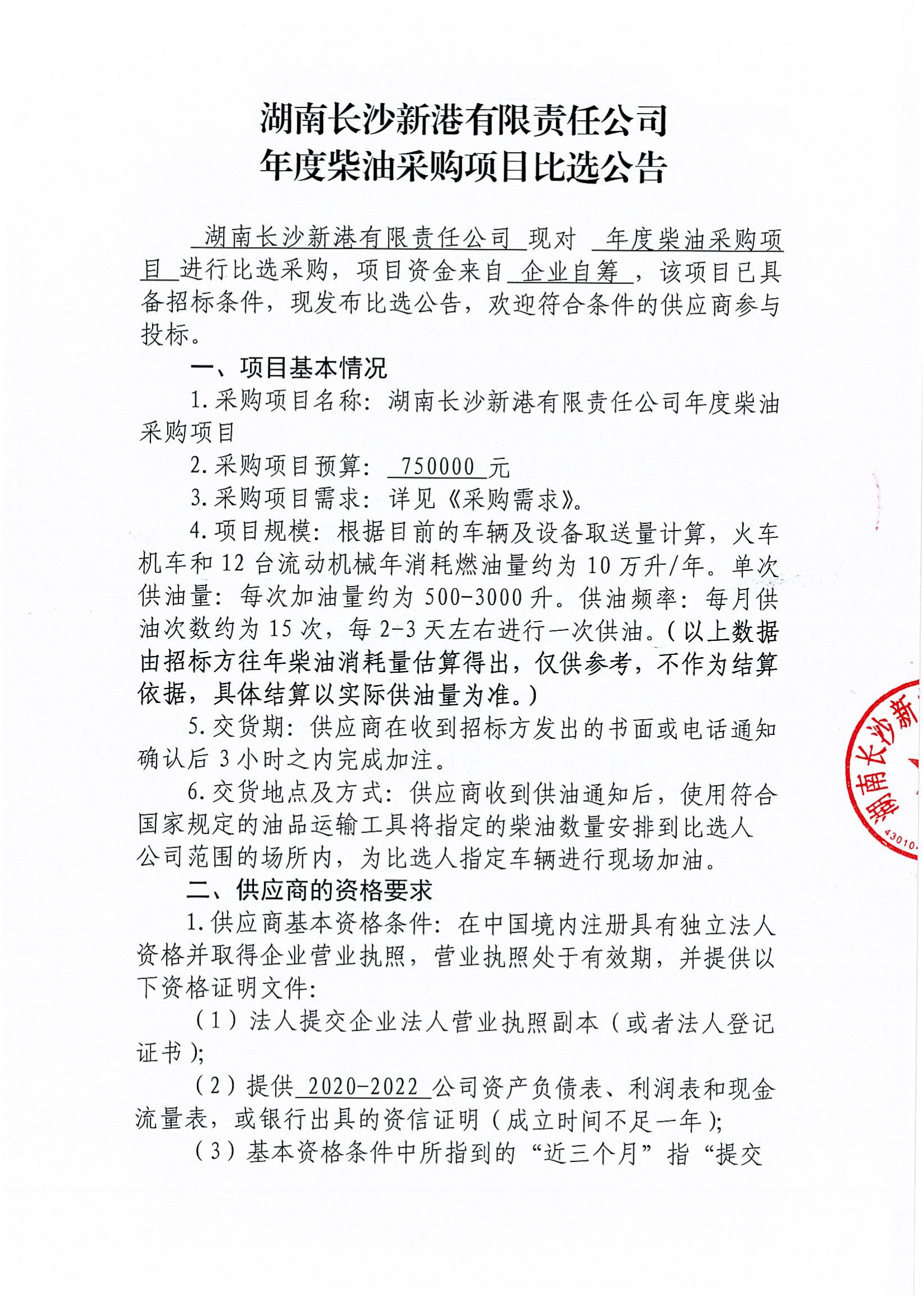 湖南長沙新港有限責任公司年度柴油采購項目比選公告