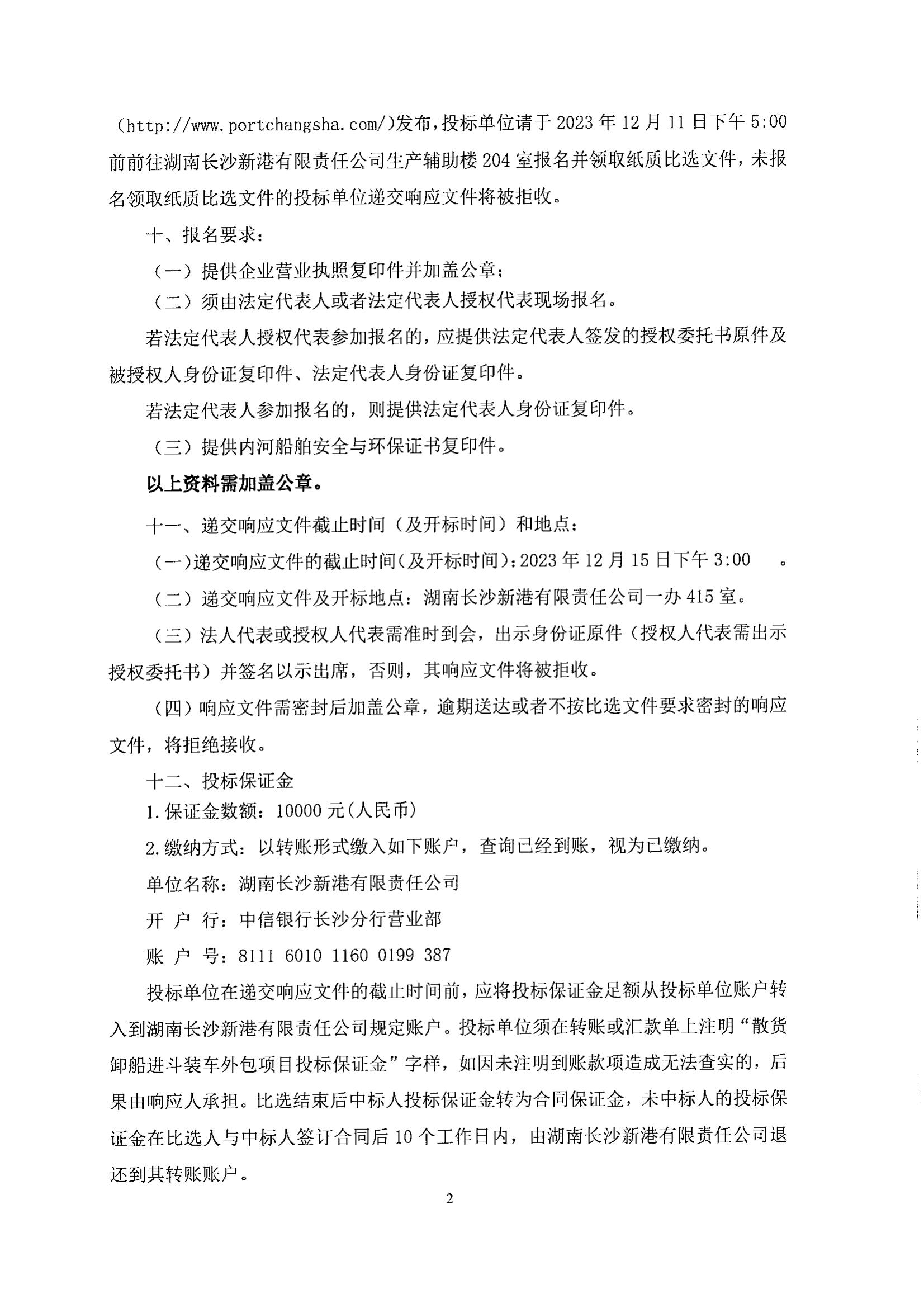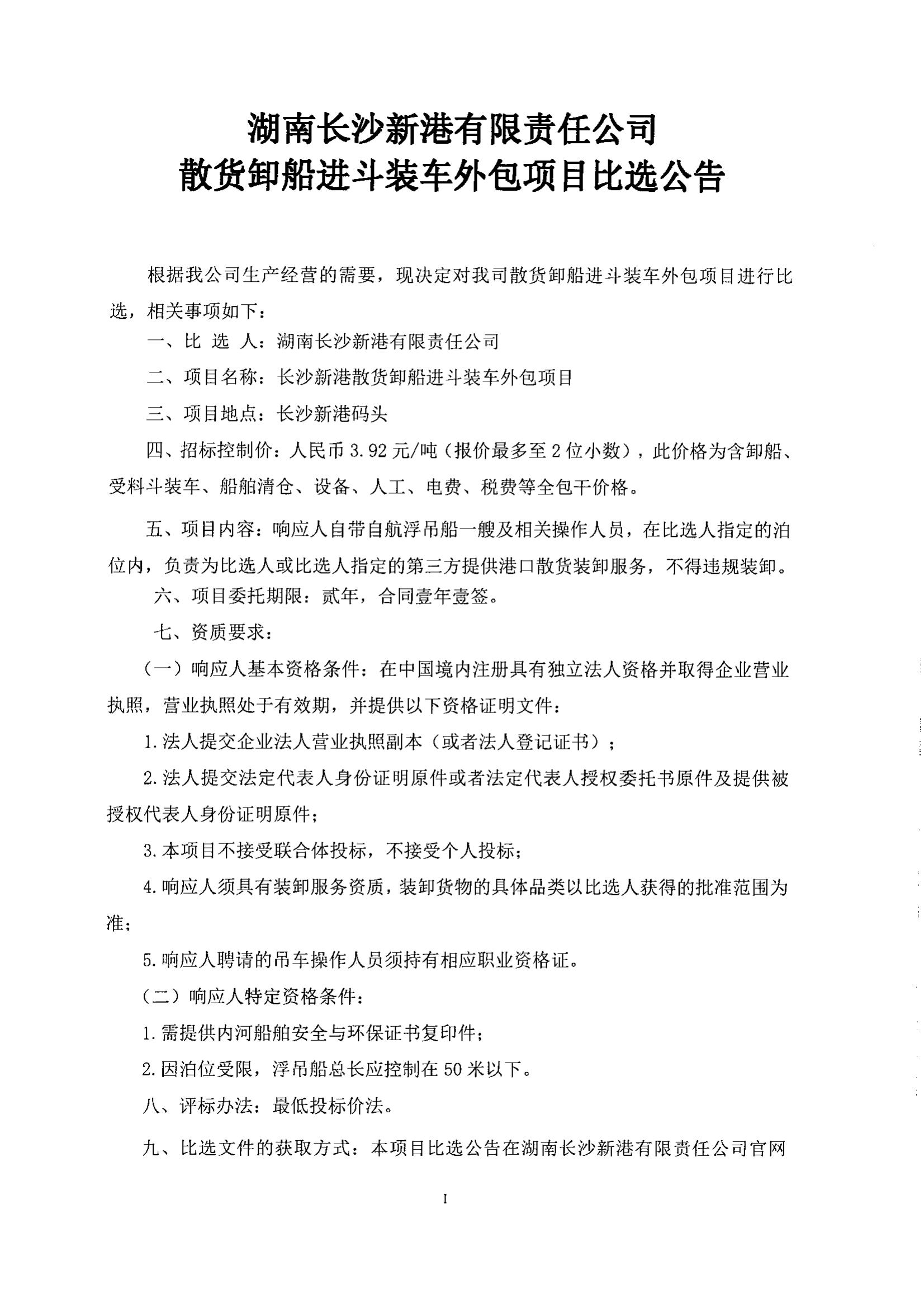 湖南長沙新港有限責(zé)任公司散貨卸船進(jìn)斗裝車外包項(xiàng)目比選公告