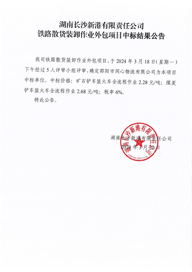 鐵路散貨裝卸作業(yè)外包項目中標(biāo)結(jié)果公告