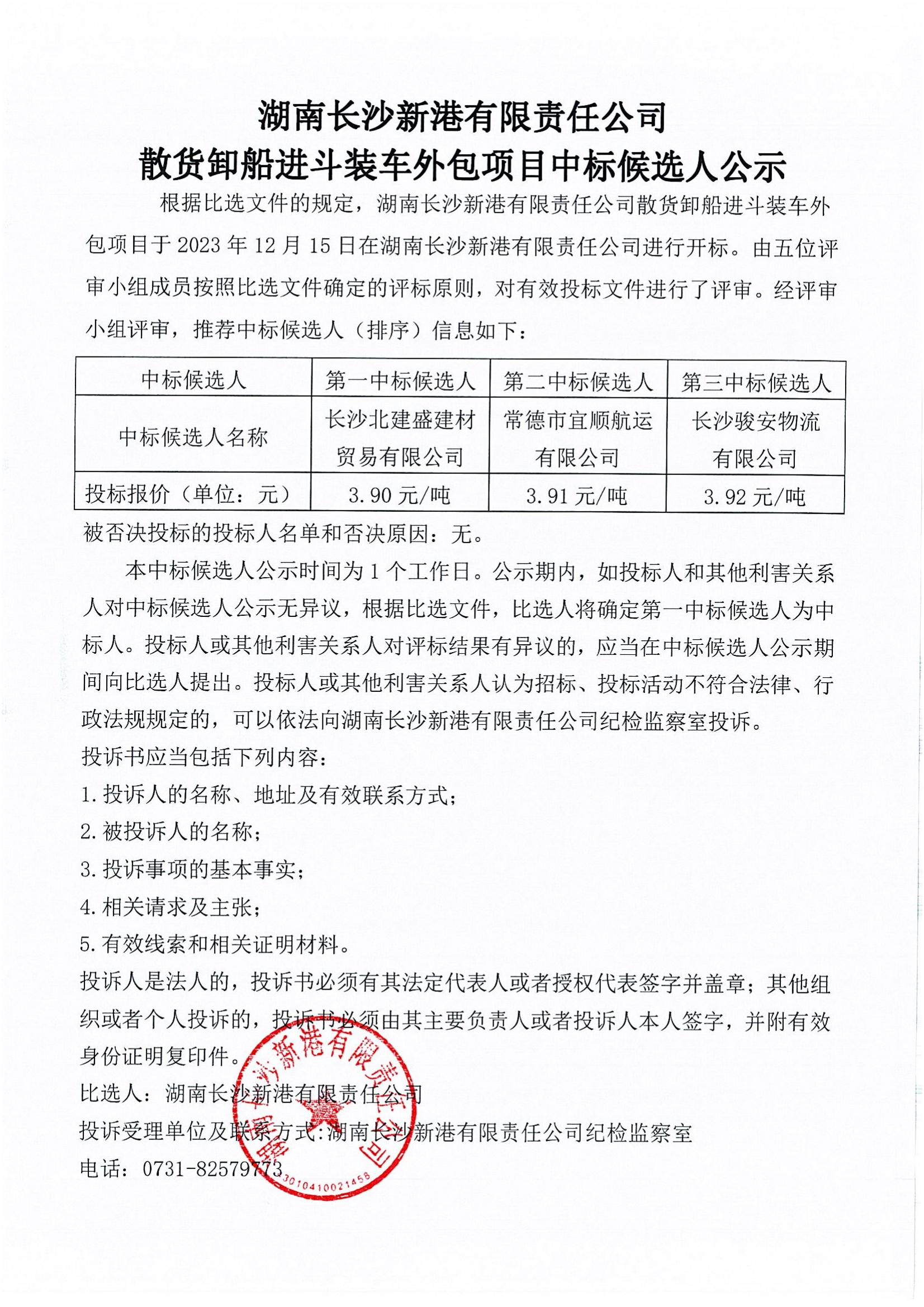 長沙新港散貨卸船進(jìn)斗裝車外包項(xiàng)目中標(biāo)候選人公示