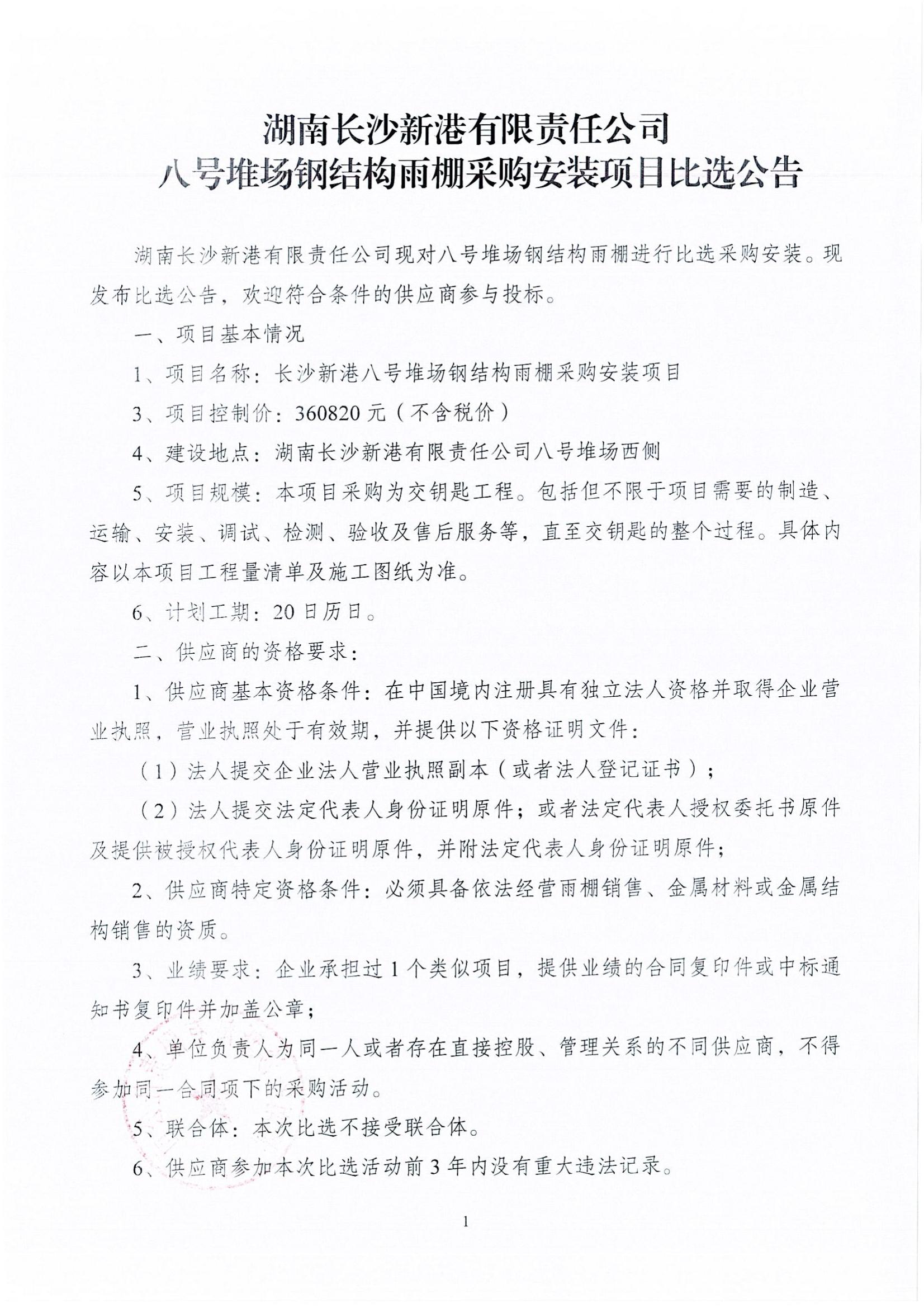長(zhǎng)沙新港八號(hào)堆場(chǎng)鋼結(jié)構(gòu)雨棚采購(gòu)安裝項(xiàng)目比選公告