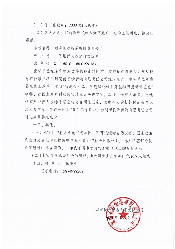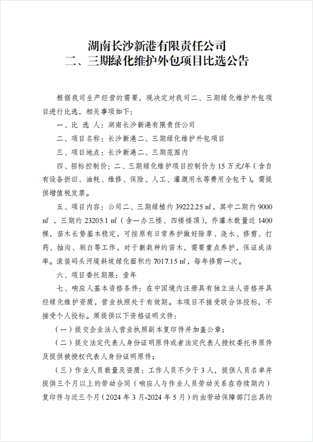湖南長(zhǎng)沙新港有限責(zé)任公司二、三期綠化維護(hù)外包項(xiàng)目比選公告