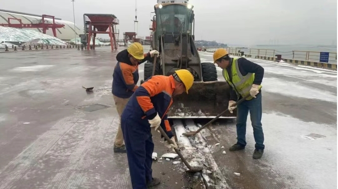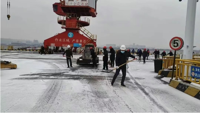 長沙金霞港口公司全體干部職工對作業(yè)區(qū)、主干道等重點(diǎn)區(qū)域的積雪積冰進(jìn)行“地毯式”清理,保障港口道路暢通無阻和作業(yè)現(xiàn)場安全有序。同時,公司嚴(yán)格執(zhí)行24小時應(yīng)急值班制度,通過內(nèi)部渠道及時發(fā)布天氣預(yù)警,確保指令上傳下達(dá)暢通,為快速響應(yīng)冰雪天氣筑牢制度保障。
